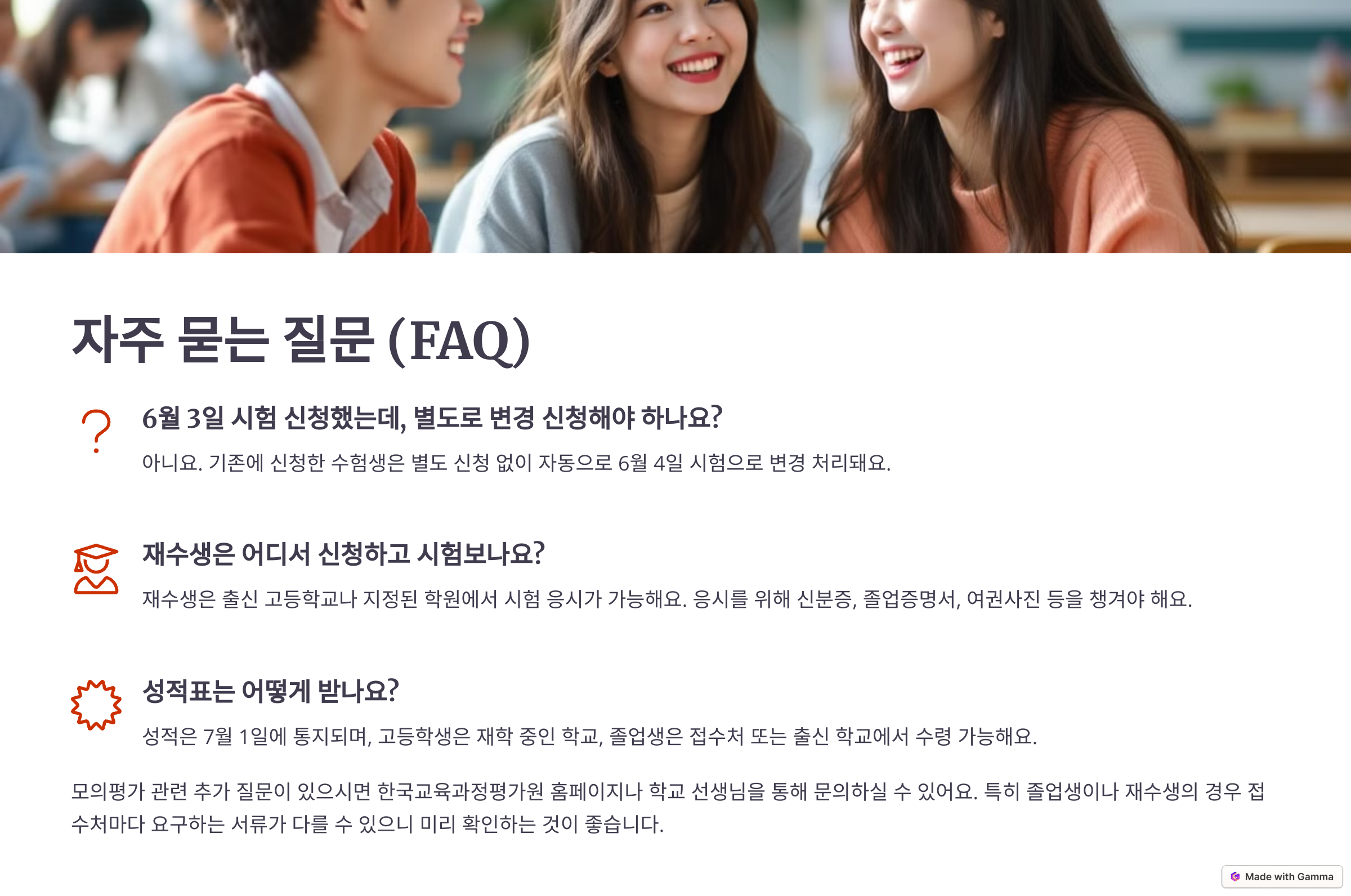 시험일이 변경되면서 접수 마감일도 기존보다 하루 늦은 4월 11일(금)까지로 조정됐어요. 이미 접수한 학생들은 별도의 조치 없이 자동으로 6월 4일 응시자로 처리되기 때문에 다시 신청하지 않아도 괜찮아요.